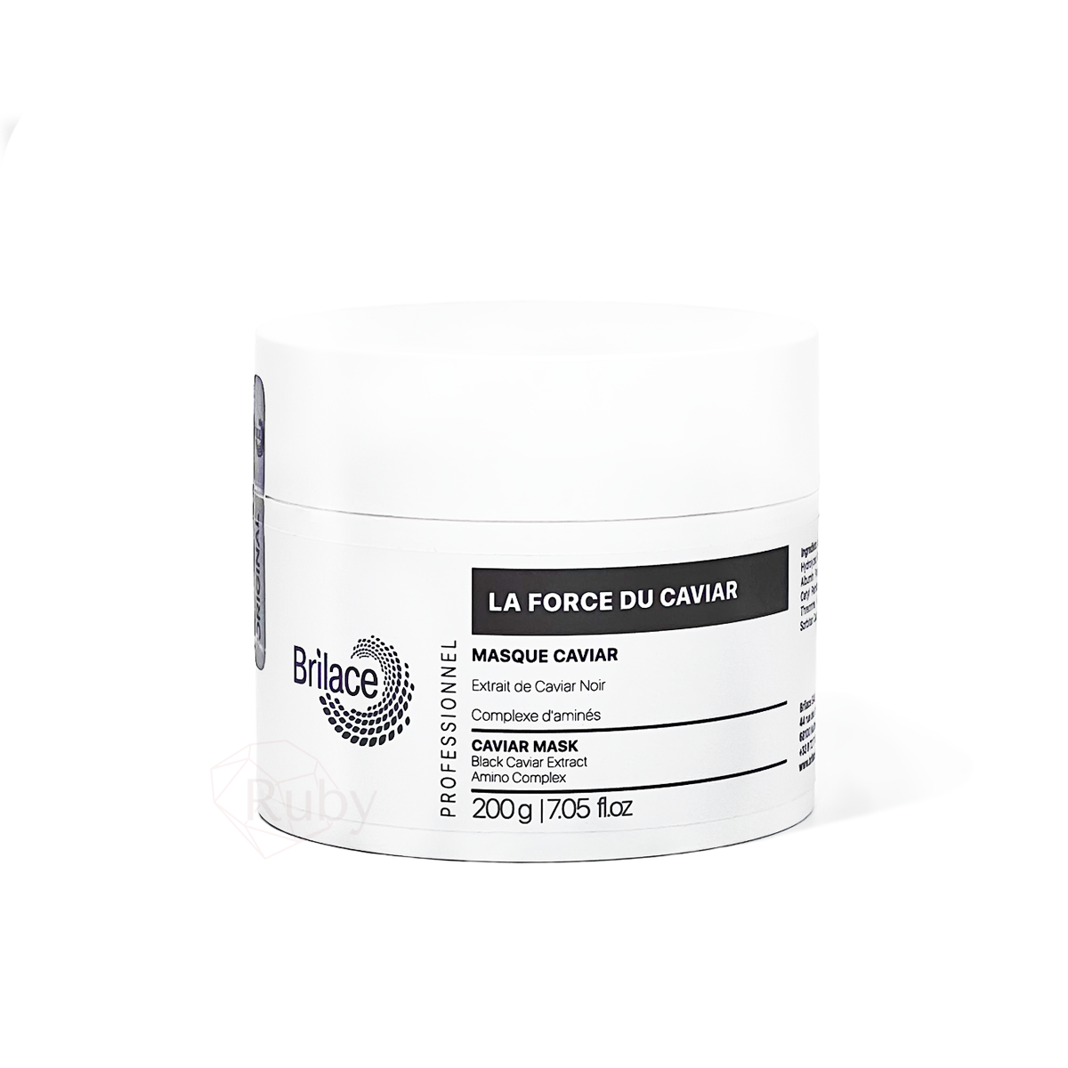 Черная глина, масло персика, экстракт черной икры, миндальное масло, молочные протеины, лизин, треонин, глицин, аланин, пролин, серин.
