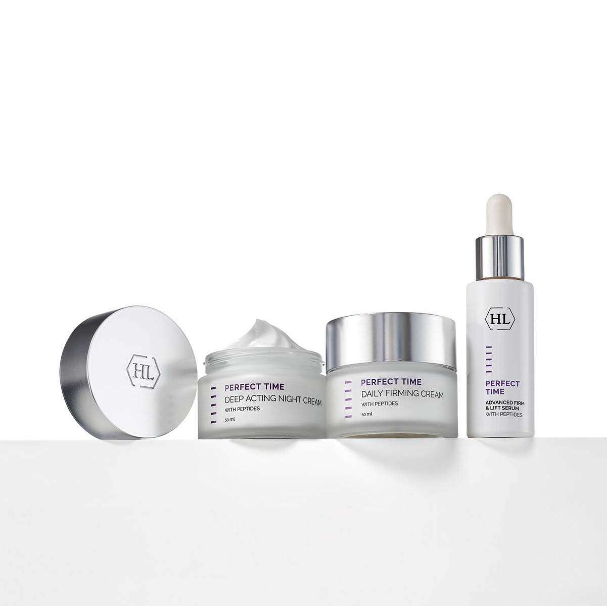 Perfect Time Kit – в этот набор вошли продукты, которые питают и увлажняют, а также помогают обеспечить коже более молодой цвет лица. Продукты этого набора минимизируют появление линий и морщин, разглаживают, укрепляют контурные линии лица, шеи и зоны декольте, а также придают более подтянутый и молодой вид.